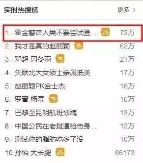 几天前,一则“霍金警告人类不要尝试登月”的消息曾刷到热搜榜第一位。