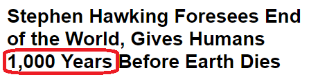 去年11月,在牛津大学的一场讲座中,霍金又给出了距地球毁灭只有1000年的预言。