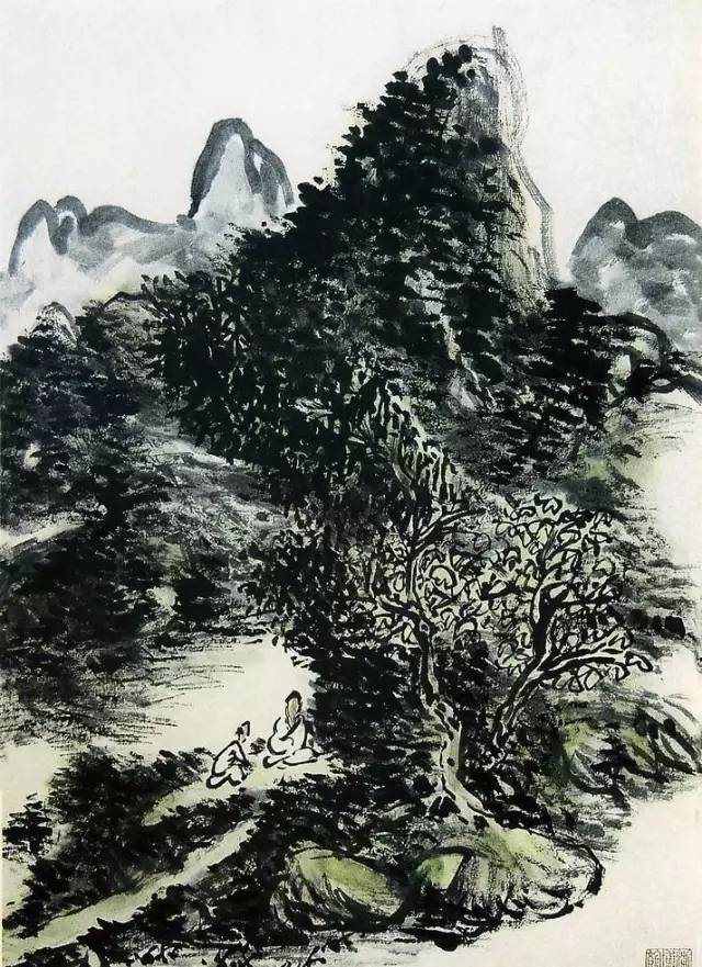 七十岁后,所画作品,兴会淋漓、浑厚华滋;喜以积墨、泼墨、破墨、宿墨互用,使山川层层深厚,气势磅礴,十分挺拔。所谓“黑、密、厚、重”的画风,正是他逐渐形成的显著特色。这一显著特点,也使中国的山水画上升到一种至高无上的境界。