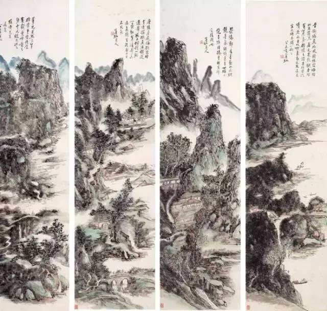 (黄宾虹 1909 山水四屏146×38cm×4)