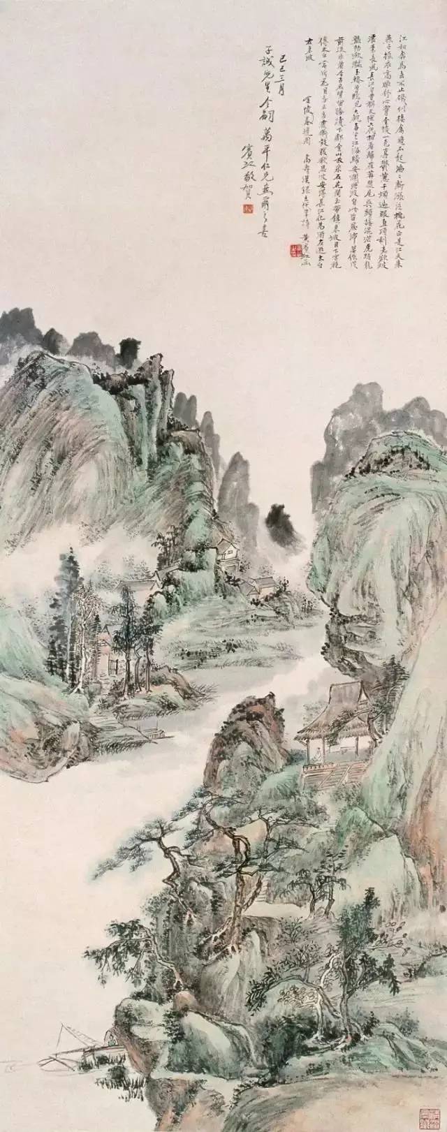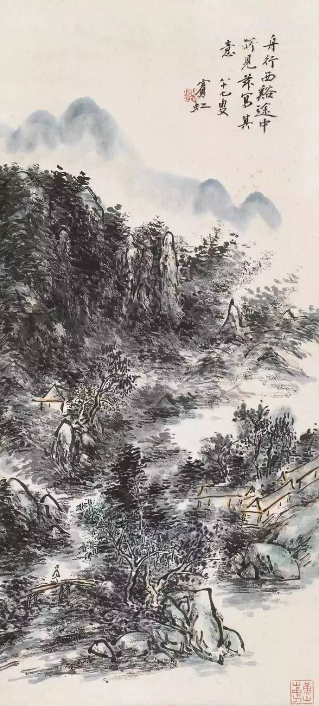 (1944年作 拟董巨二米大意 173.5×91.5cm)