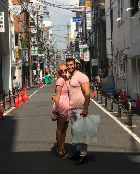 六月的时候,还发了一张和新男友的虐狗照。对方是个职业健身教练,小鲜肉。