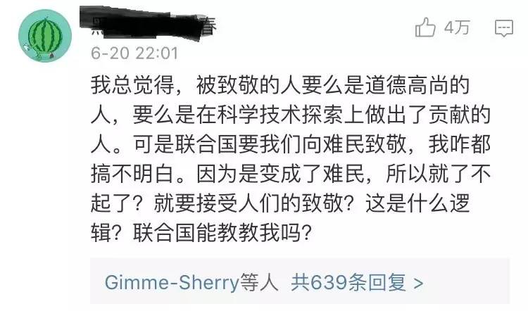 联合国难民署官微下点赞最多的一条评论