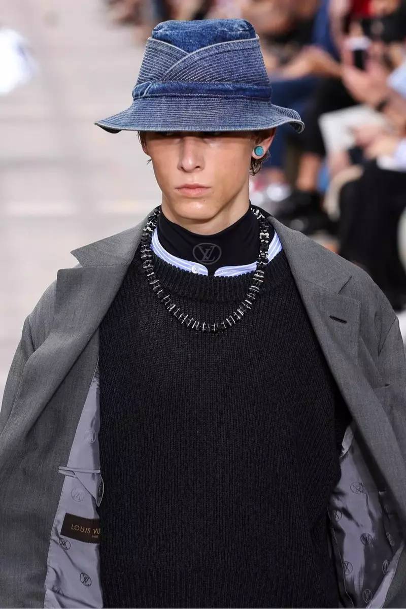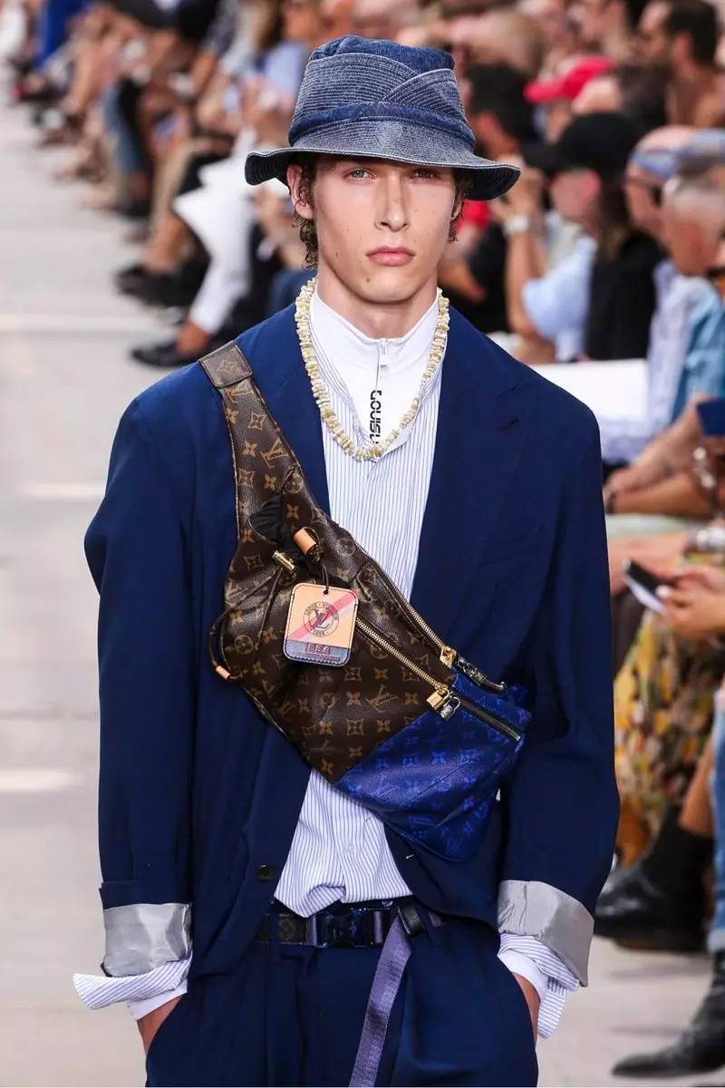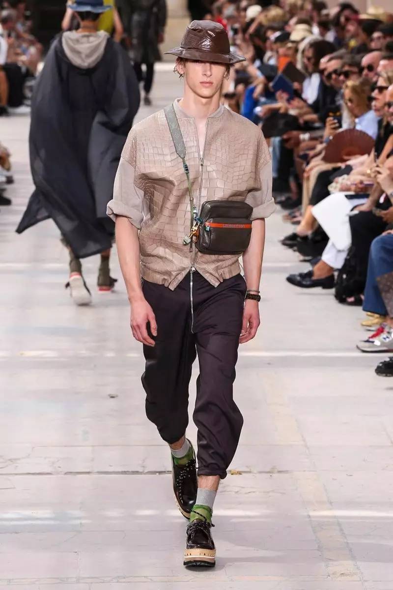 这些符号依然在讲述属于Kim Jones和Louis Vuitton 的旅行真谛。伴随这些服装的是那些讨巧且精致的各类包款,三种不同尺寸的盒子手包是这次最大的亮点,Kim Jones将经典的拼色硬箱缩小成为了手包和mini box,每一款都别具匠心。