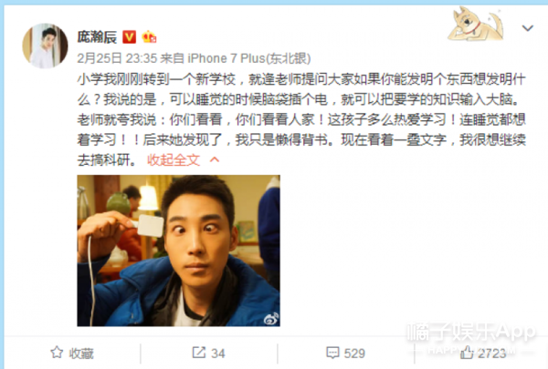 生活中的他,是一个比较开朗逗逼的男孩,他更新的微博都简单粗暴,要不是发一条连接,转发一条宣传。