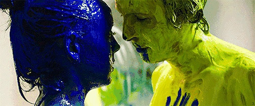 相比之下,高年级学长承担了学校里的权威角色,但我们不能把丢床垫、撒猪血、暗夜爬行这些行为,单纯地解释为《魔女嘉莉》中的那种“校园欺凌”(不过这些画面倒是完美地让电影产生了一种仪式感)。所有人似乎都在逼迫Justine加入到一个放肆、狂欢的阵营,Justine迫切需要的是身份认同。而在处女到非处女,素食主义到捕猎者这两层相辅相成的剧情线中,做出选择的恰恰是Justine自己——就像“黄”+“蓝”=“绿”的那场戏:Justine咬掉了同学的嘴唇,在浴室淋浴,从牙缝中剔出了一小撮肉,随后又将它捡起来,细细品尝。