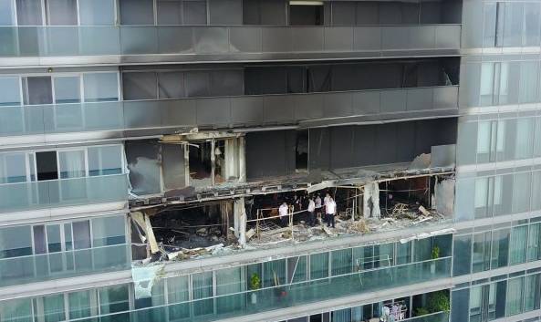 22日清晨,钱江晚报记者赶到事发小区,不过现场已拉起了警戒线,无法进入小区。透过围栏,看到公安和消防人员不时进出。在之江路这侧的马路上,18楼烧焦的阳台异常醒目。