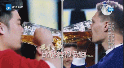 最后,也是最高能的环节,就是喝啤酒大赛了,你们看看成员们听到这趴的反应,本性暴露了有木有?这哪儿是比赛啊,明明就是福利好么!