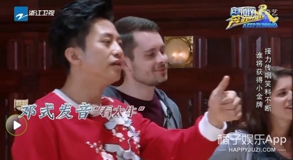 大概就是从那个猜歌游戏开始的吧,想想一群完全不懂中文的外国人唱《小龙人》《回娘家》,那画面简直酸爽,橘子君是全程颤抖地看完这个环节的,可以说非常爆笑了:
