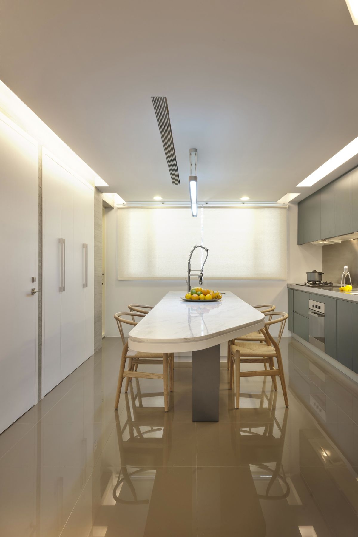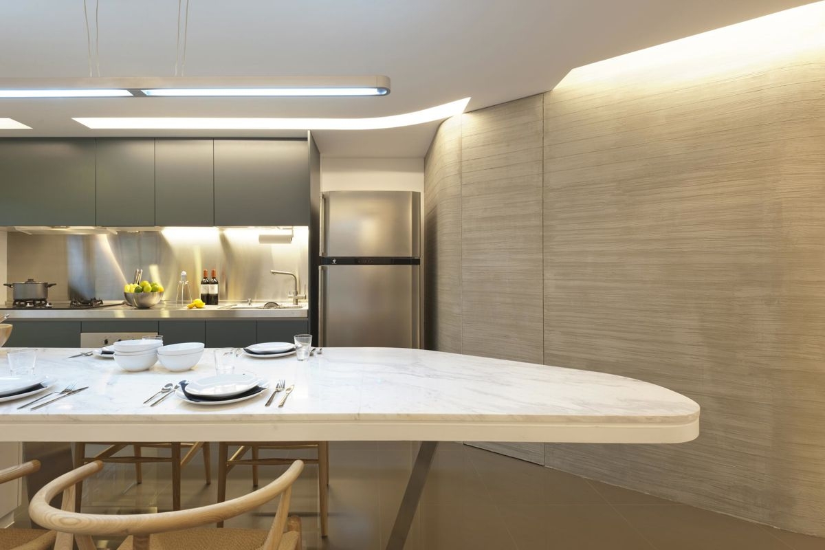 餐厅以独特优雅线条感的餐桌,搭配禅意简约的禅意,整个餐厅简洁大方的氛围显得格外的舒适惬意;