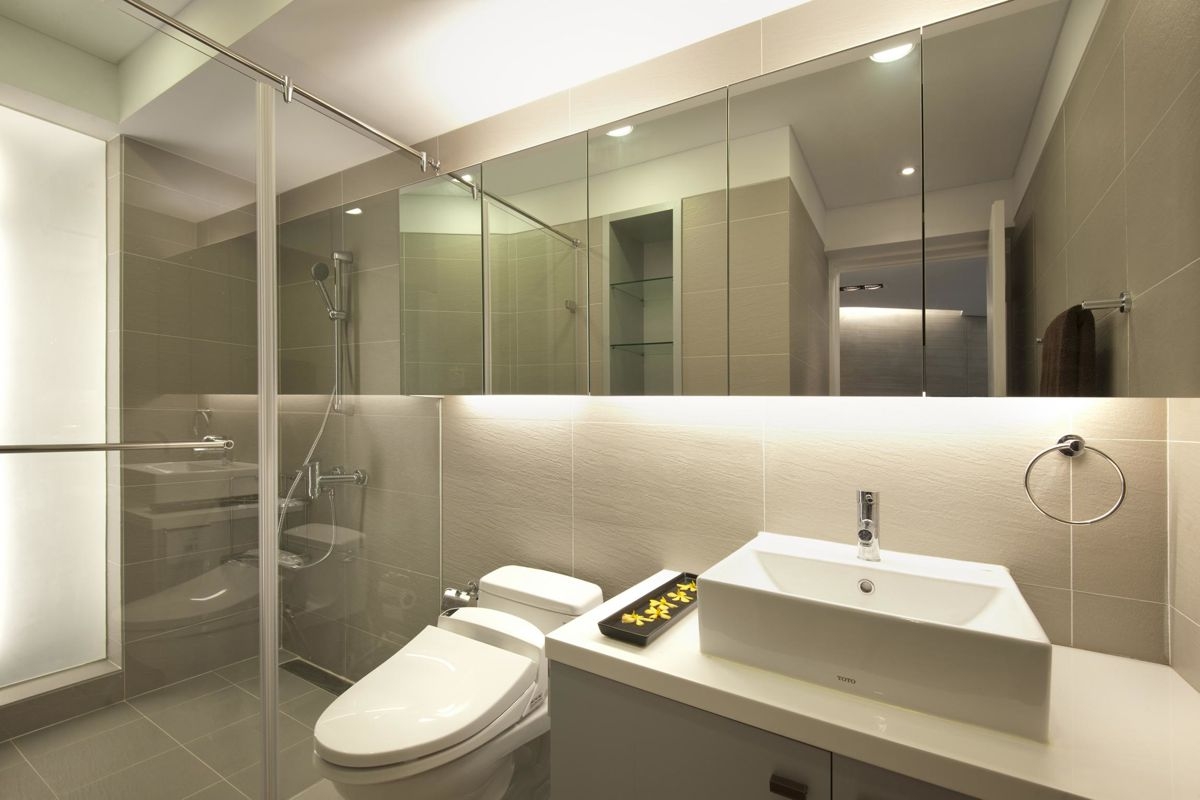 卫生间的整体设计简洁舒适,通过收纳把卫浴用品储藏起来,整个空间都呈现出舒适优雅的氛围;