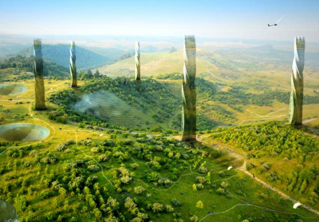 这栋大厦高约420米、80层,包含办公,住宿以及酒店等功能。