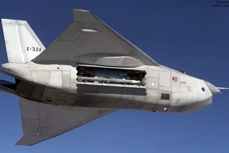 由于机身中间被发动机占据,所以X-32的弹舱只能布置在两侧