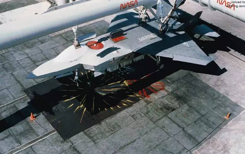 而STOVL型的升力方式则沿用自AVX-70,采取中置发动机升力喷管,和升力风扇相比,中置发动机仅多出几具位于机腹的矢量喷管,有效降低冗重,但同时局限住发动机摆放位置,使得机身构型受到限制,也较为粗壮,整体而言这种升力方式鲜少用于需要超音速、低阻力的战斗机,此外,中置发动机也有着向下喷射之气流为滚烫热气,对跑道或甲板伤害极大,产生的尘土容易损害机身的缺点,自颔式进气道吸入的热气轻则降低发动机推力,严重可能会造成发动机故障,导致飞安意外发生。