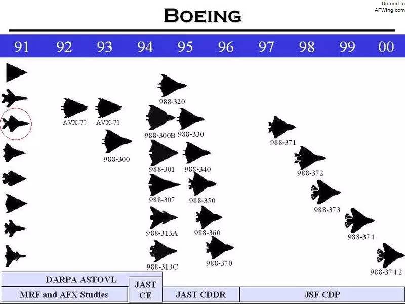 渡过独自开发寒冬的波音在1994年年底JAST项目先后并吞CALF、ASTOVL两大项目后迎来属于他们的春天,纵然有着麦道、BAE、诺斯洛普组成的梦幻团队,以及率领YF-22开发团队取得ATF项目订单的洛克希德两大强敌,但至少波音已经取得了JAST项目的概念验证阶段参赛资格,而该公司也对自家提出的构型有相当的信心。