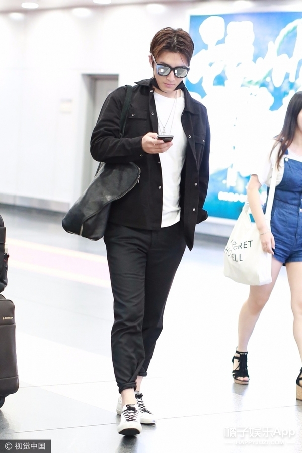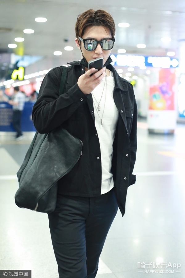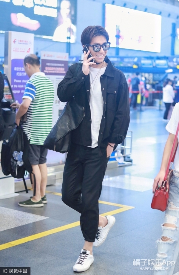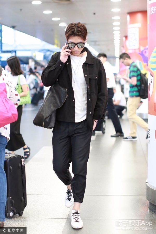 一身黑白Look亮相,酷劲十足!一路还业务不断,一直忙着语聊~