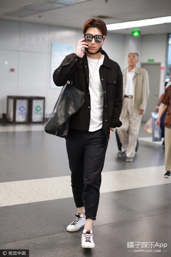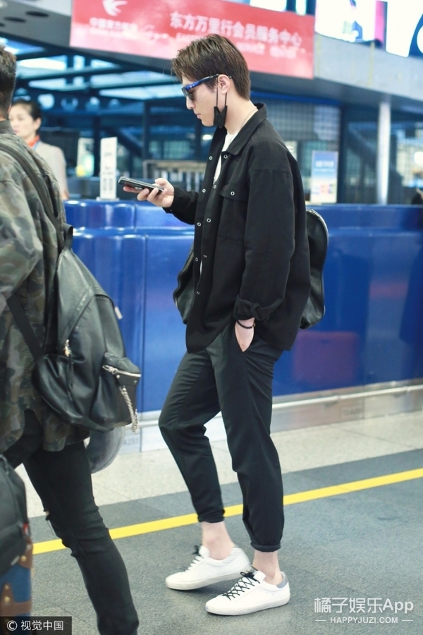 梳着干净清爽的中分头,戴着黑色反光墨镜和黑色口罩遮面,尽显潮男范儿~
