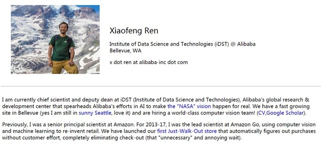 任小枫的个人主页显示,他将继续留在西雅图工作,招募组建世界一流的计算机视觉团队。