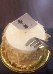 原谅橘子君没有拍到照片,那一层薄薄的蛋糕默默地藏在慕斯最底层,怎么拍都拍不清楚。好吧这不重要,重要的是蛋糕吃起来有颗粒感,且有一种独特的坚果香。询问了一下店员,里面添加了一种叫作“巴达木”的坚果。
