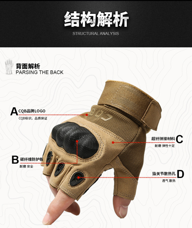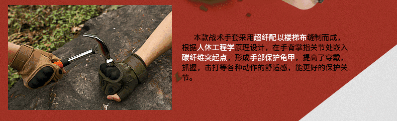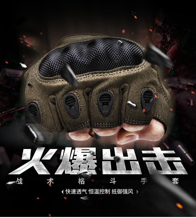 近距离战斗除了需要掌握格斗技巧,还需要做好时刻的防护,而手掌的保护则是容易被忽视的重点。缓存、防护、防滑、耐磨是战术手套的基础功能,今天为大家推荐的是一款攻击兼防护性能优良的战术手套。超纤硬壳设计提升了击打快感,特殊的加厚双层掌垫可加大物体便面的摩擦力,橡胶透气孔能够有效的排除手掌的汗水。