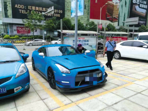 6月26日早9点,一位小伙子开着一辆宝蓝色的尼桑GTR在滇池路某路口等信号灯,为了炫车,他在路口空轰油门,发动机发出的巨大噪音对周边同样等车的驾驶员造成了极大干扰,有车主直接向交警举报了这辆车。