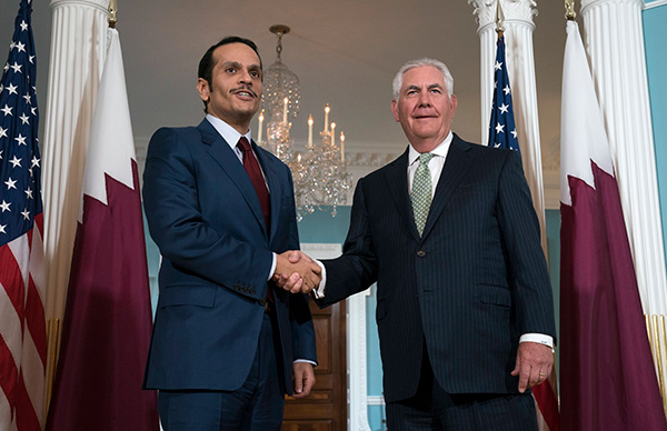 与此同时,正在美国华盛顿访问的卡塔尔外交大臣穆罕默德(Sheikh Mohammed bin Abdulrahman Al Thani)在同一天与美国国务卿会晤后表示:“那些封锁卡塔尔的国家提出的仅仅是一个声明,并非‘要求’,也非‘证据’。谈判需要对方展现出真正的诉求,并有证据支撑。”