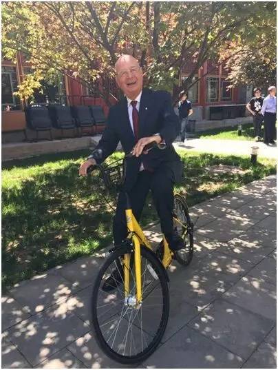 5月14日,现如今已经80岁的达沃斯论坛创始人兼主席施瓦布教授在北京会见了“全球杰出青年社区”代表,作为杰出青年代表,戴威受邀出席,两位创始人初次见面。会谈中,施瓦布受戴威邀请骑行ofo小黄车,骑行过后施瓦布盛赞ofo对人类出行和环保起到重要作用。