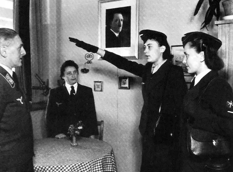 她人生真正的转折点是在30年代。当希特勒独掌大权开始搞事时,她和当时许许多多的德国青年一起被希特勒的谎言所迷惑,加入了纳粹党,在即将爆发的战争中成为纳粹的走卒。起初,他们的斗争目标是魏玛共和国政府人士以及其它民主政党人员,而当纳粹党大权独掌的时候,他们的矛头便直指德国境内的少数人,尤其是犹太人。