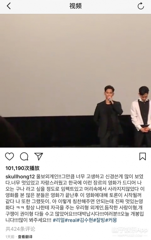 随后他的至亲李洪基在ins上为他应援,还上传了一段在试映会亲自拍金秀贤的视频。这两人真的很亲呢!