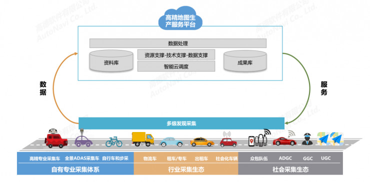 高德目前建立的导航地图的更新体系已经非常高效。有UGC、来自政府的数据、来自行业的数据、自身强大的众包队伍以及专业的采集队伍。现在的更新已经是组合的形式,并且大量使用云计算、大数据去做数据更新的体系。