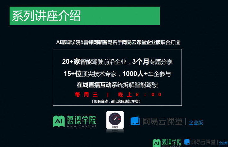 接下来,硅谷自动驾驶技术公司 Vector.ai CEO 蔡长柏(Andrew Tsai)等更多神秘嘉宾还将为学员带来更多精彩分享,课程内容将于后期陆续上线,敬请留意雷锋网AI慕课学院。