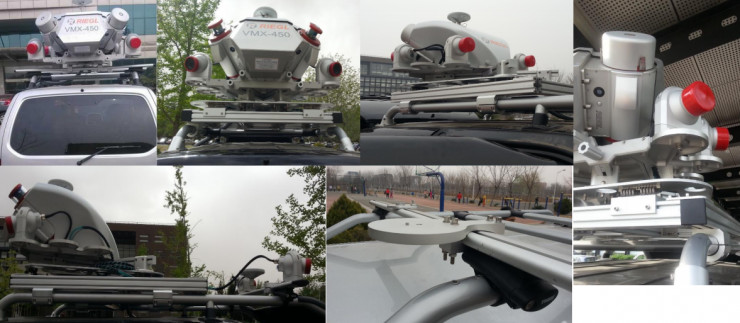 2015年初,高德从国外引进了一套成熟的激光扫描设备,这个设备上有两个单线的激光雷达、6个摄像头(工业相机)以及一个GNSS天线,还有IMU。激光雷达采用的是奥地利厂商的产品,可以扫面三个面,基本上不会漏扫。