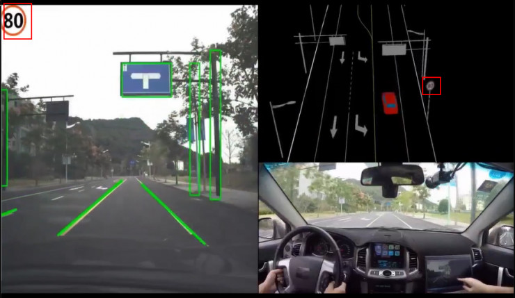 目前,基于高德通过摄像头传感器和深度神经网络训练出来的识别系统,车辆行进过程中可以对路边新增的标牌很好地识别(如上图),系统可以更新地图、重新绘制地图,下一步就是要对传感器采集到的数据进行融合。