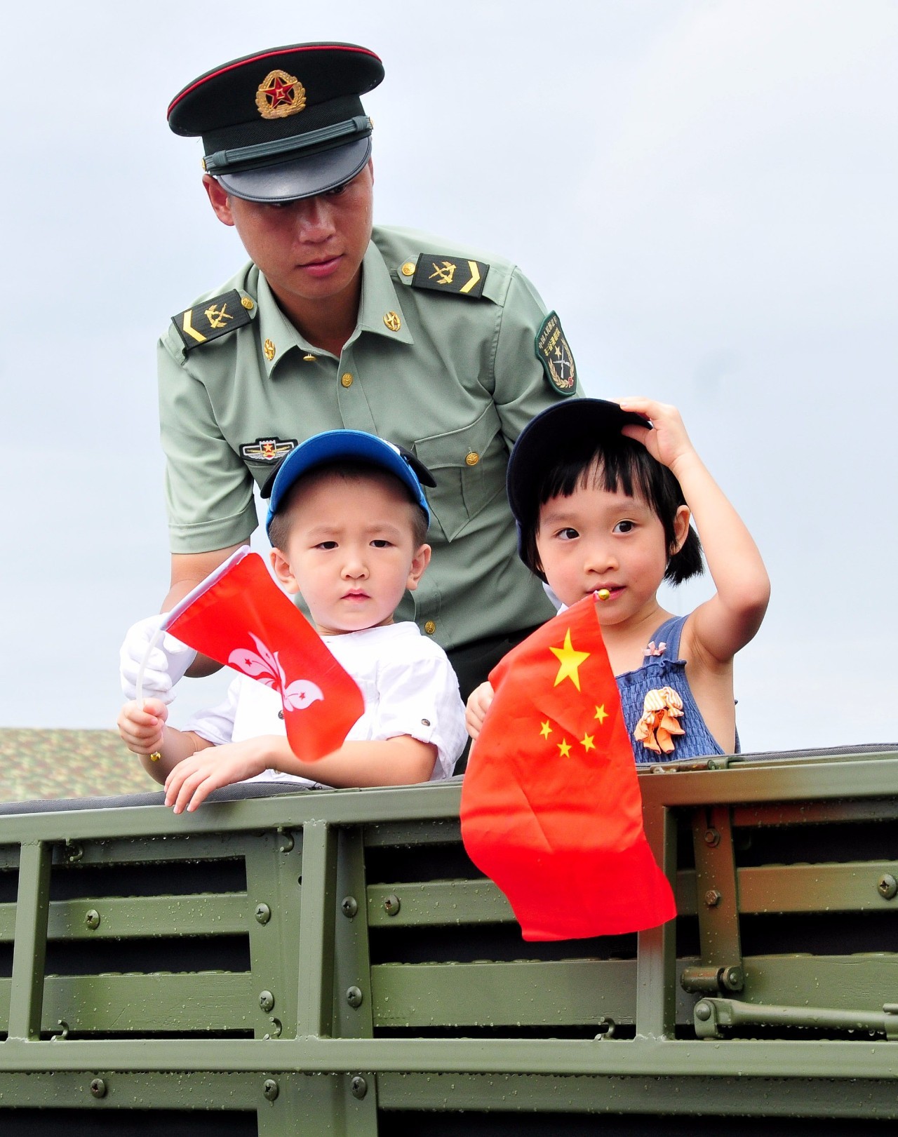 “我代表中国人民解放军驻香港部队接管军营。你们可以下岗,我们上岗。祝你们一路平安。” 谭善爱洪亮的声音,犹如铿锵誓言和庄严承诺,响彻香港上空。