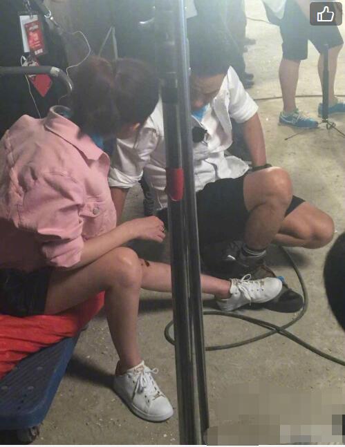 了解了大概伤势后,任达华就去现场找了止血药还有创可贴,帮赵丽颖清理伤口,为了方便处理赵丽颖直接把腿驾到任达华的膝盖上,单脚站立着,两人的举动把旁人都看呆了,不得不说,任达华真的比赵丽颖的助理还要贴心呢。