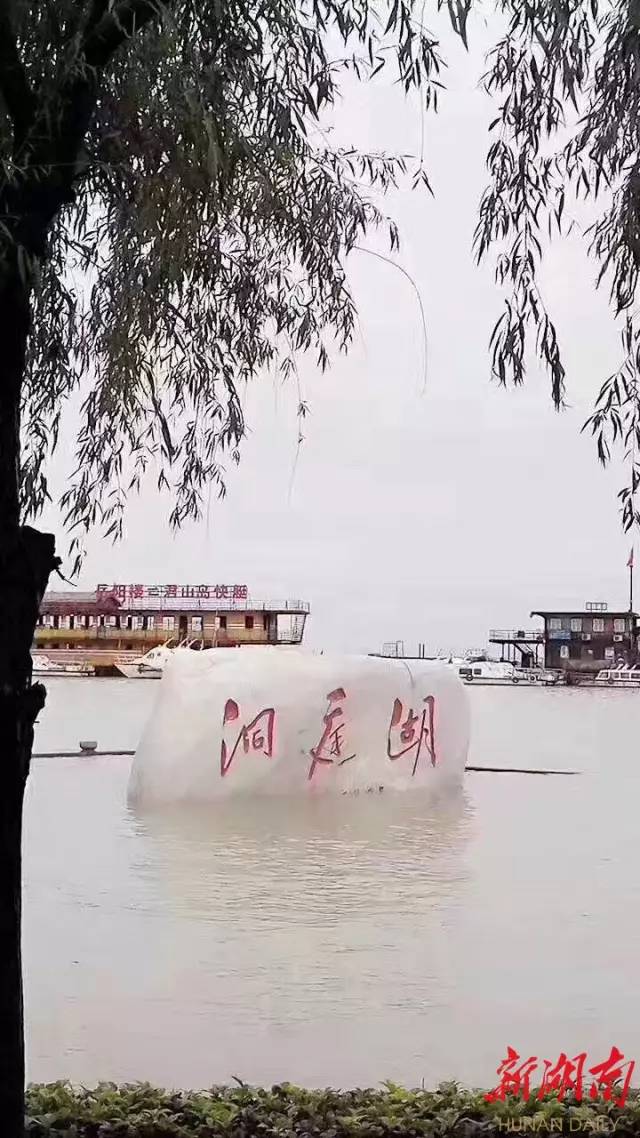 岳阳君山景区,强降雨后,洞庭湖水位上涨,通往景区的道路被淹没