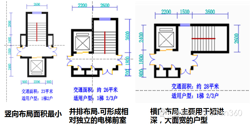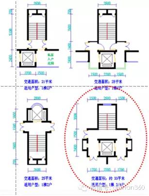 四种布局主要在高档品质楼盘中见到,均是在电梯上做文章,包括电梯直接入户(双开门)和观光电梯等。其中,上图两种布局适用于南向单元入口、下图两种布局适用于北向单元入口。