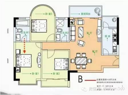 主卫布局不合理:主卧室和卫生间(尤其是卫生间的门)的关系不理想,风水上通常忌讳坐厕对床。