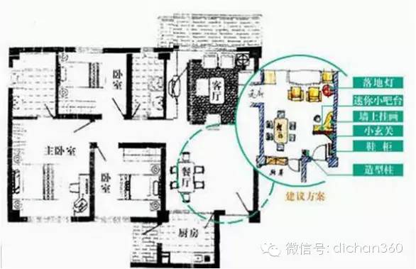 减少直接向起居室开门的数量,至少一面墙的直线长度不小于3米