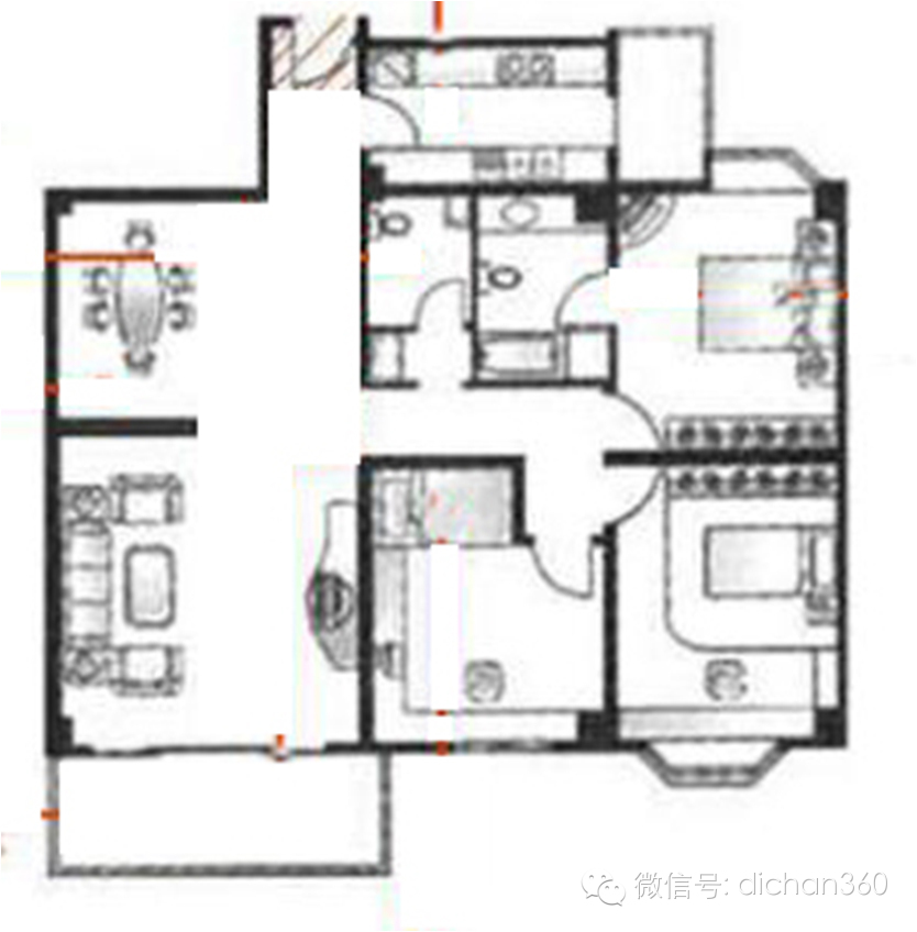 布局不紧凑,导致整体使用效率大大降低。其中,客厅过道过于浪费面积。