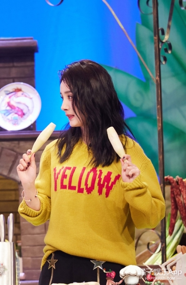 另外,杨幂在参加《姐姐好饿》时,穿了一件黄色毛衣,先不说现在夏天的反季节穿衣,橘子君看了也觉得热.......