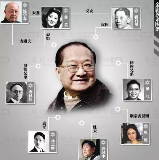 蒋家、查家都是海宁大族,蒋百里的原配妻子查品珍就是金庸的同族姑母。金庸虽然从没见过这个姑父,却始终以其为骄傲,回大陆时还特意去扫过墓。而蒋百里的女儿女婿蒋英和钱学森,则是金庸在内地最早的粉丝,尤其喜欢《神雕英雄传》。