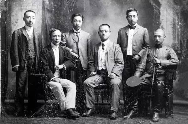 ▲蒋百里(右一持军刀者)在日本与友人合影