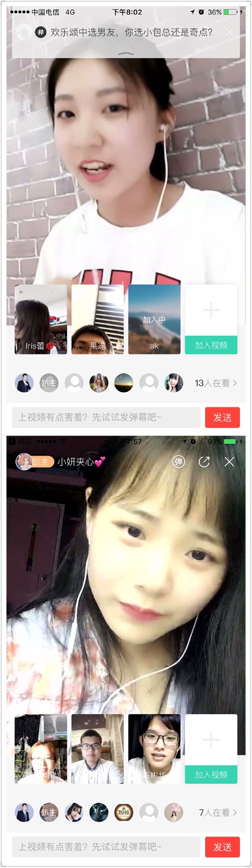 2、一上来必须要有个清晰的场景,否则一定尬聊。要么,超熟人之间美颜版的facetime。要么,半数人之间的话题破冰、主题活动。通过明确的场景先完成“最初的教育”,让用户习惯了视频,再逐步向其他场景扩张。