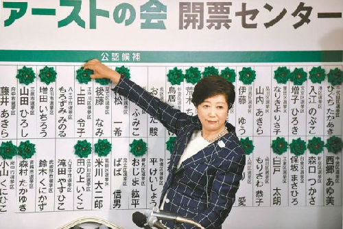 这位65岁的东京女市长,在当天选举中率地方政党重挫自民党。后者只获得了127个议席中的23个,创历史新低。
