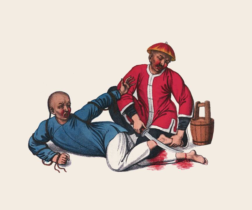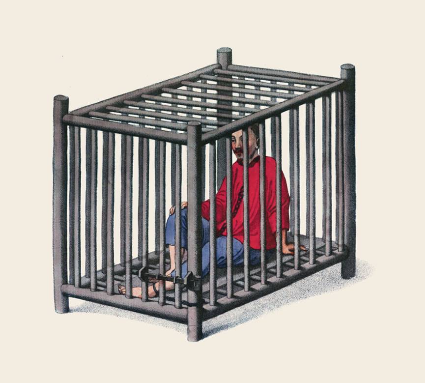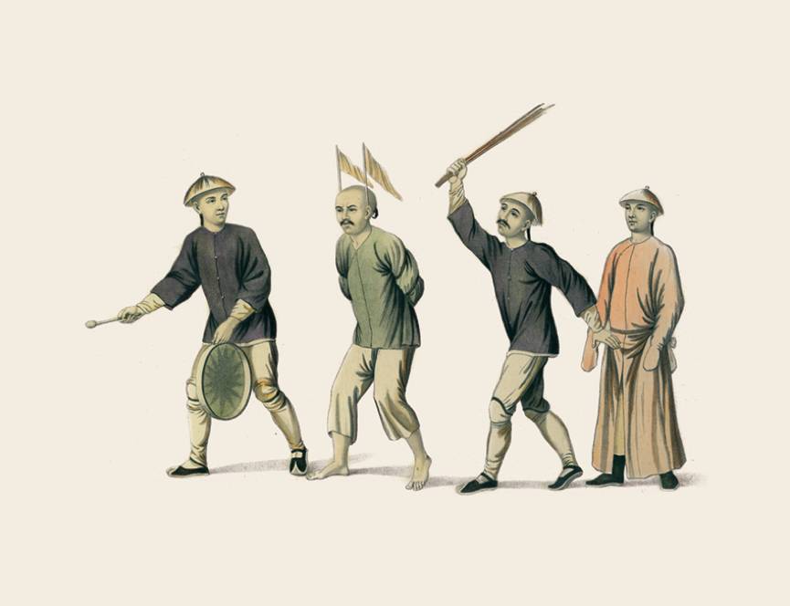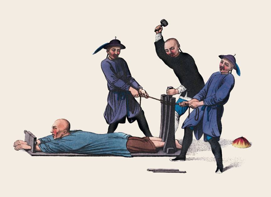 中国刑法法典的编纂方式是每一种罪名都有相对应的量刑,后续的插图将展示一系列的刑罚。