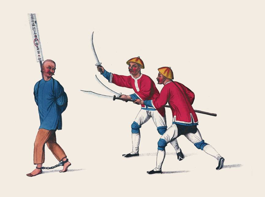 中国常见的死刑包括绞刑和斩首。前者最为常见,适用于那些犯有第二等重罪的犯人。比如说,蓄意杀人或者过失杀人,欺骗政府,诱奸已婚或未婚女性,辱骂双亲,挖坟掘墓,持械抢劫,佩戴珠宝等。中国的立法者对佩戴珠宝之人施加如此重的刑罚,动机何在?目前我们尚不得而知。这一说法见诸几位作家的书中,具体解释还是留给未来的评论家吧。