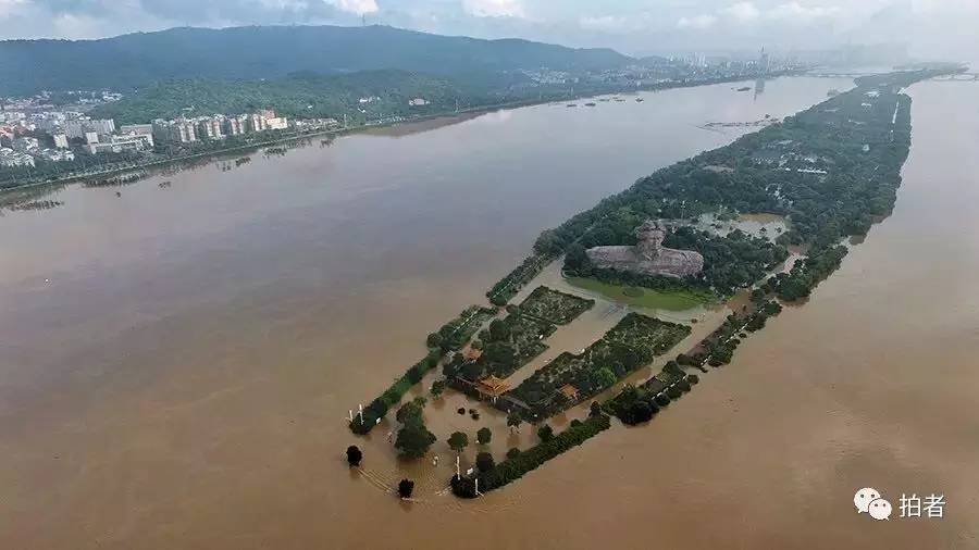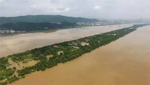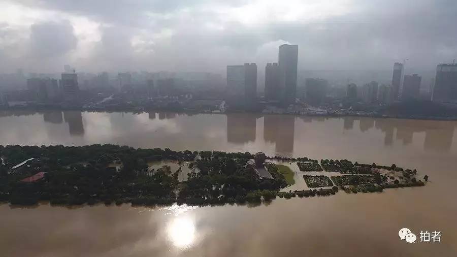 7月2日,长沙市,湘江水位达到39.51米,上涨的河水漫上了橘子洲。