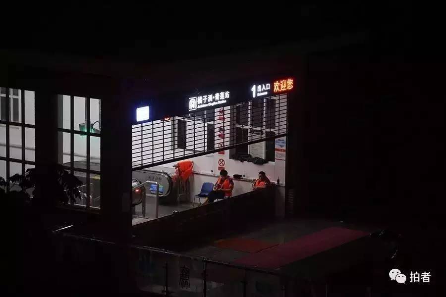 7月2日凌晨1时左右,长沙市,橘子洲站内,两名身着救生衣的工作人员在值班。