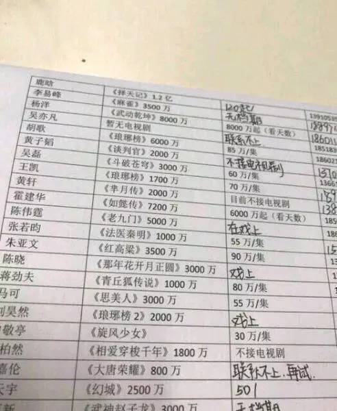 按照杨天真的说法,就算鹿晗的1.2亿是工作了八个月,那每个月的工资有1500万,每天的工资高达50万,这不算天价吗?看网曝的这份片酬名单,小鲜肉高片酬的现象非常普遍。